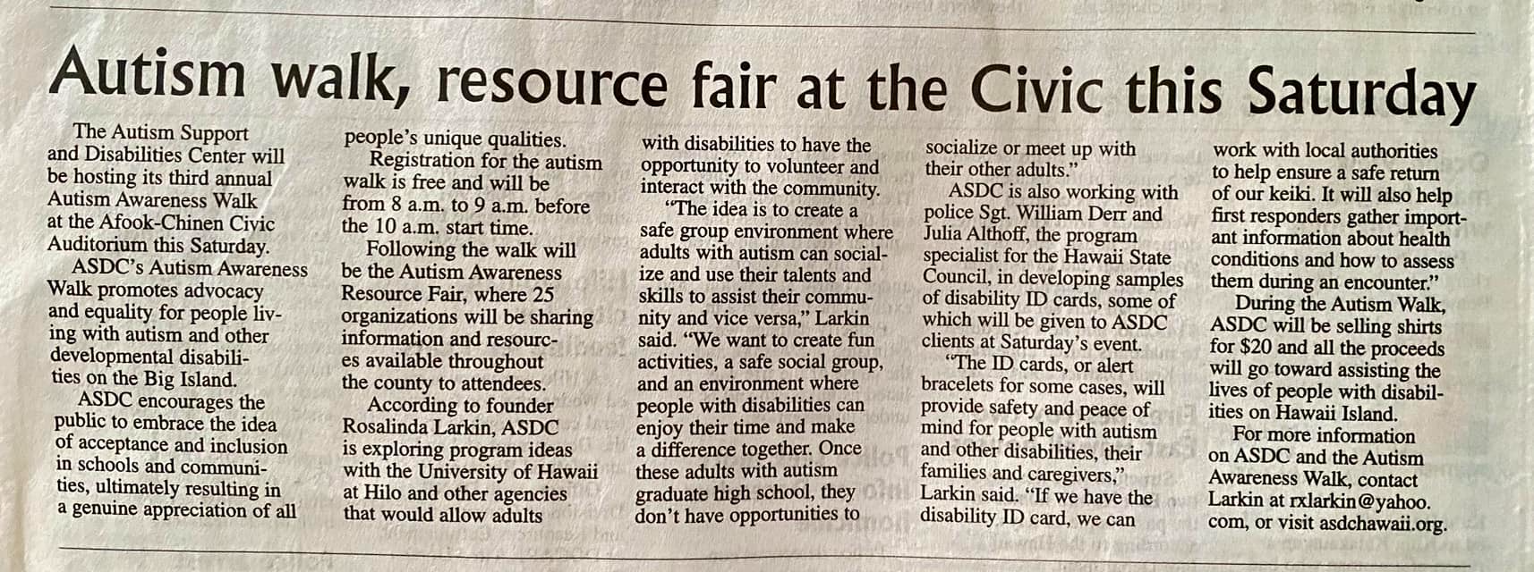 3rd Annual Autism Awareness Walk – May 4, 2024